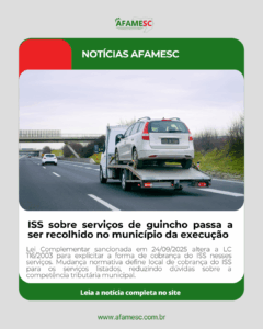 Lei Complementar sancionada em 24/09/2025 altera a LC 116/2003 para explicitar a forma de cobrança do ISS nesses serviços. Mudança normativa define local de cobrança