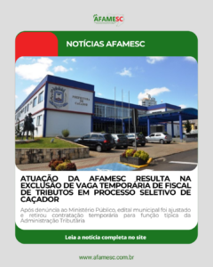 ATUAÇÃO DA AFAMESC RESULTA NA EXCLUSÃO DE VAGA TEMPORÁRIA DE FISCAL DE TRIBUTOS EM PROCESSO SELETIVO DE CAÇADOR